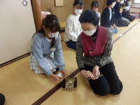 11月26日(金)、6年生が持田公民館で「茶道」の体験をしてきました。初めての作法に苦労している児童もいました。和菓子についても教えてもらい、美味しくいただきました。日本の伝統文化を体験して、また成長した6年生です。