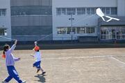 2月18日(水)、1年生が「たこあげ」を行いました。本校の校庭は工事中で使えないので、西中学校の校庭を使わせていただきました。広い校庭を走り回っていました。糸が絡まってしまった子もいましたが、どの子も楽しく取り組めたようです。